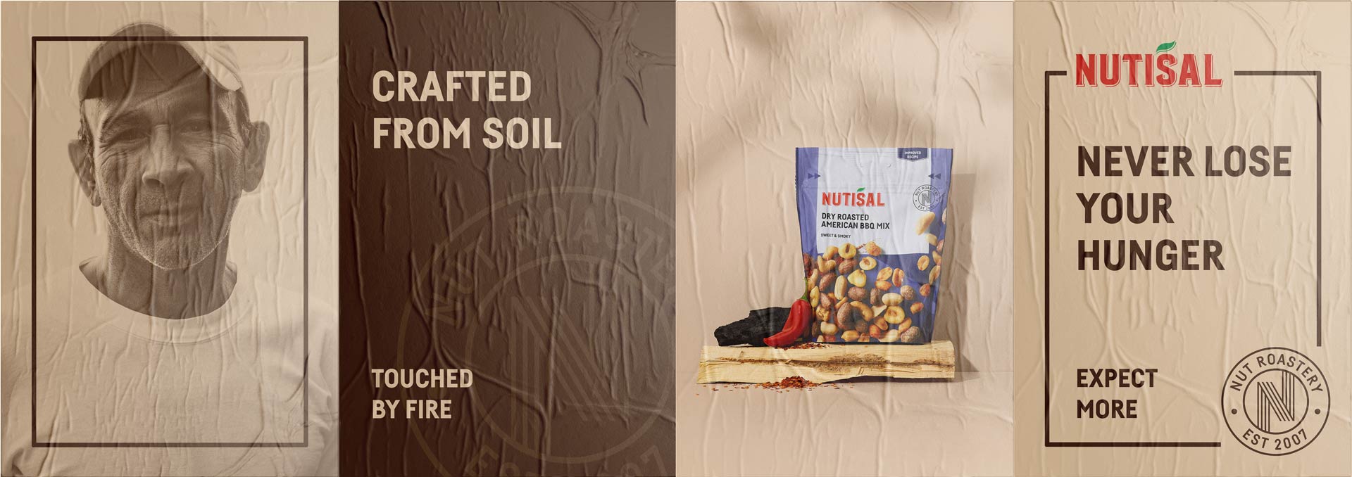 The future of Nutisal is built on a legacy of craft and passion. By infusing earthy colors, proud typography and putting the nuts front and center, everything was stripped down to its essence. We moved away from factory processes and glossy bags portrayed with flying nuts and special effects and started talking about a roastery where things are made by skilled people and refined craft. So, what is Nutisal then?