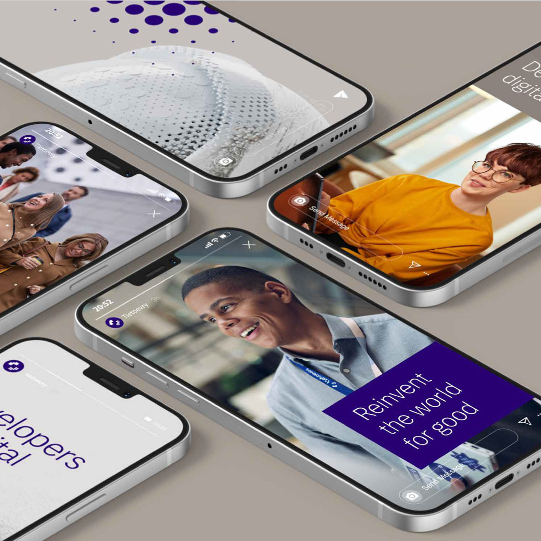 To express the essence of the new Tietoevry, we created a brand and identity that lives in the intersection between humanity and technology. It combines friction with a progressive, creative, and responsible way forward — changing the way Tietoevry does business while claiming a new position in the market.
